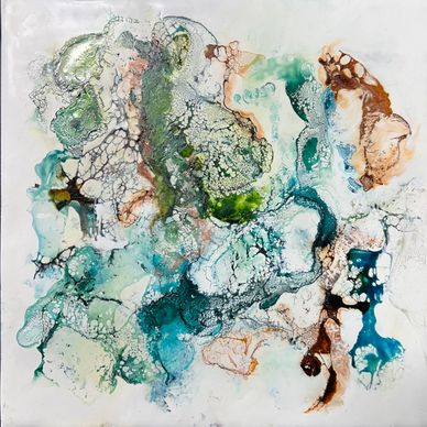 Acrylique, encre, crayon sur canevas avec couture et coton fromage